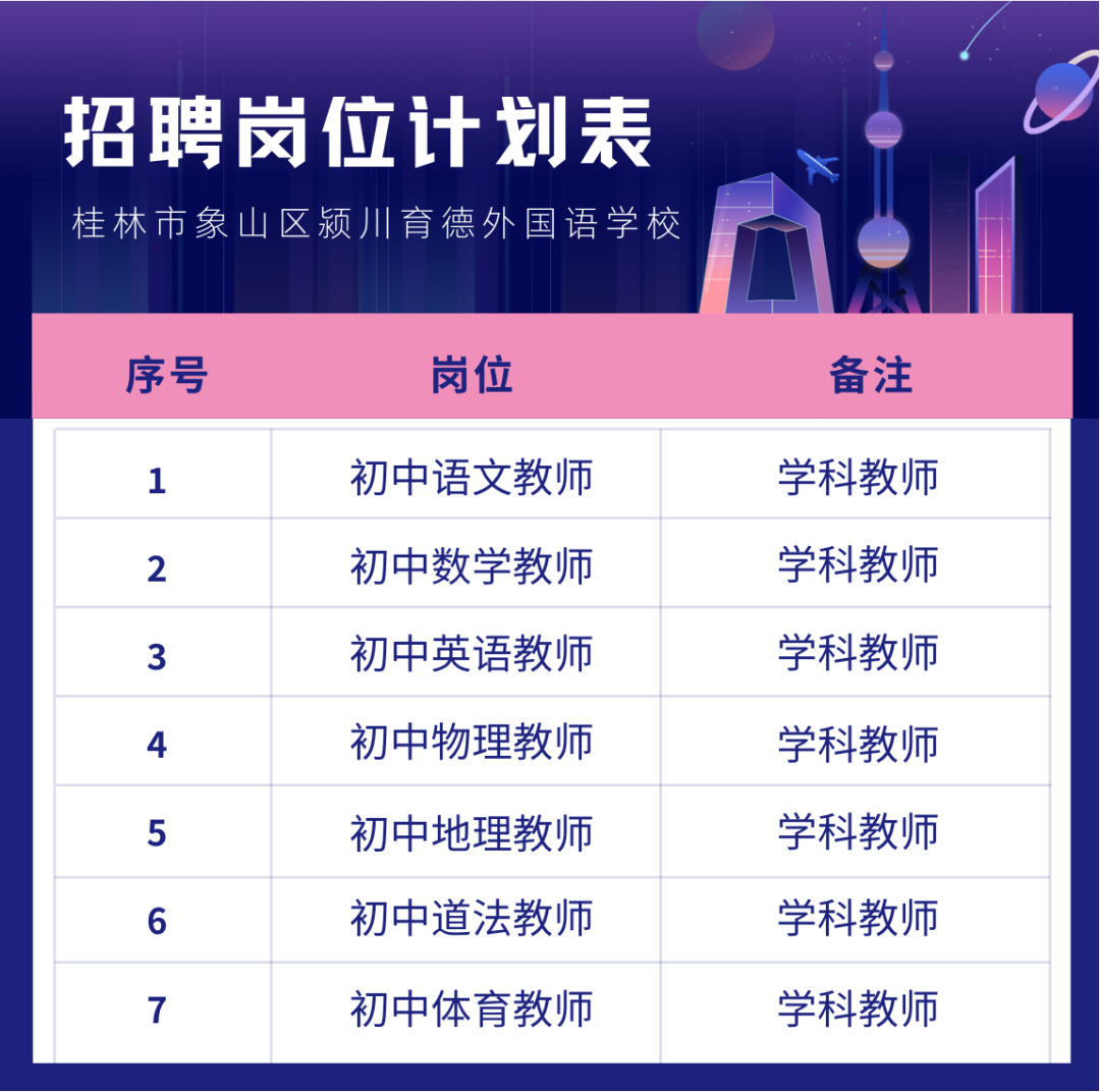 您還將獲得:職稱評定、專業(yè)成長培訓、工會活動、校際交流、享受國家法定節(jié)假日、帶薪寒暑假、生日禮券、節(jié)日獎金,我們將以優(yōu)渥的待遇、優(yōu)美的環(huán)境、和諧的氛圍、人文關(guān)懷的管理制度、廣闊的事業(yè)平臺,創(chuàng)造“聚心、聚氣、聚力”的工作和生活環(huán)境,讓老師們能在這里安心工作、快樂生活!