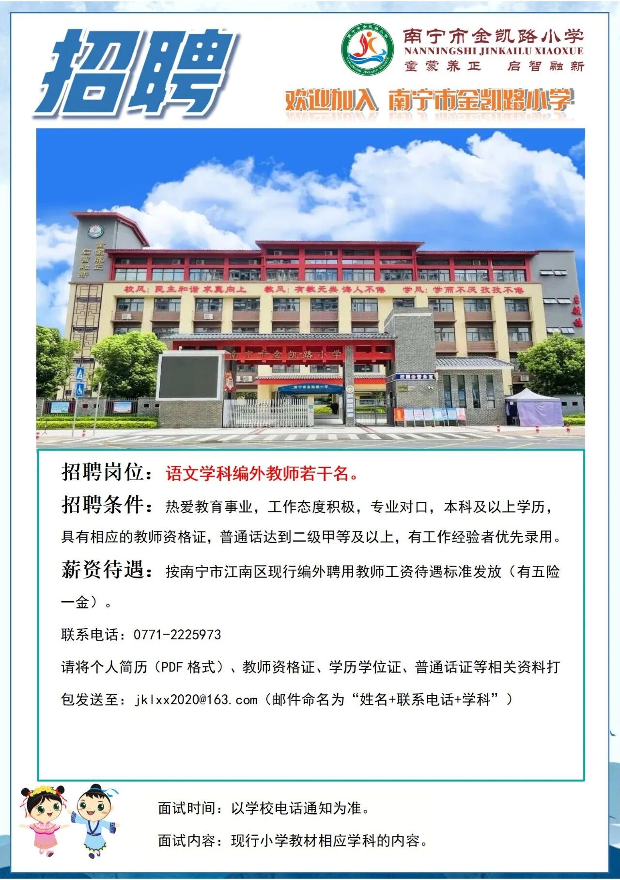 原文標題:2025年南寧市金凱路小學招聘語文學科編外教師若干人